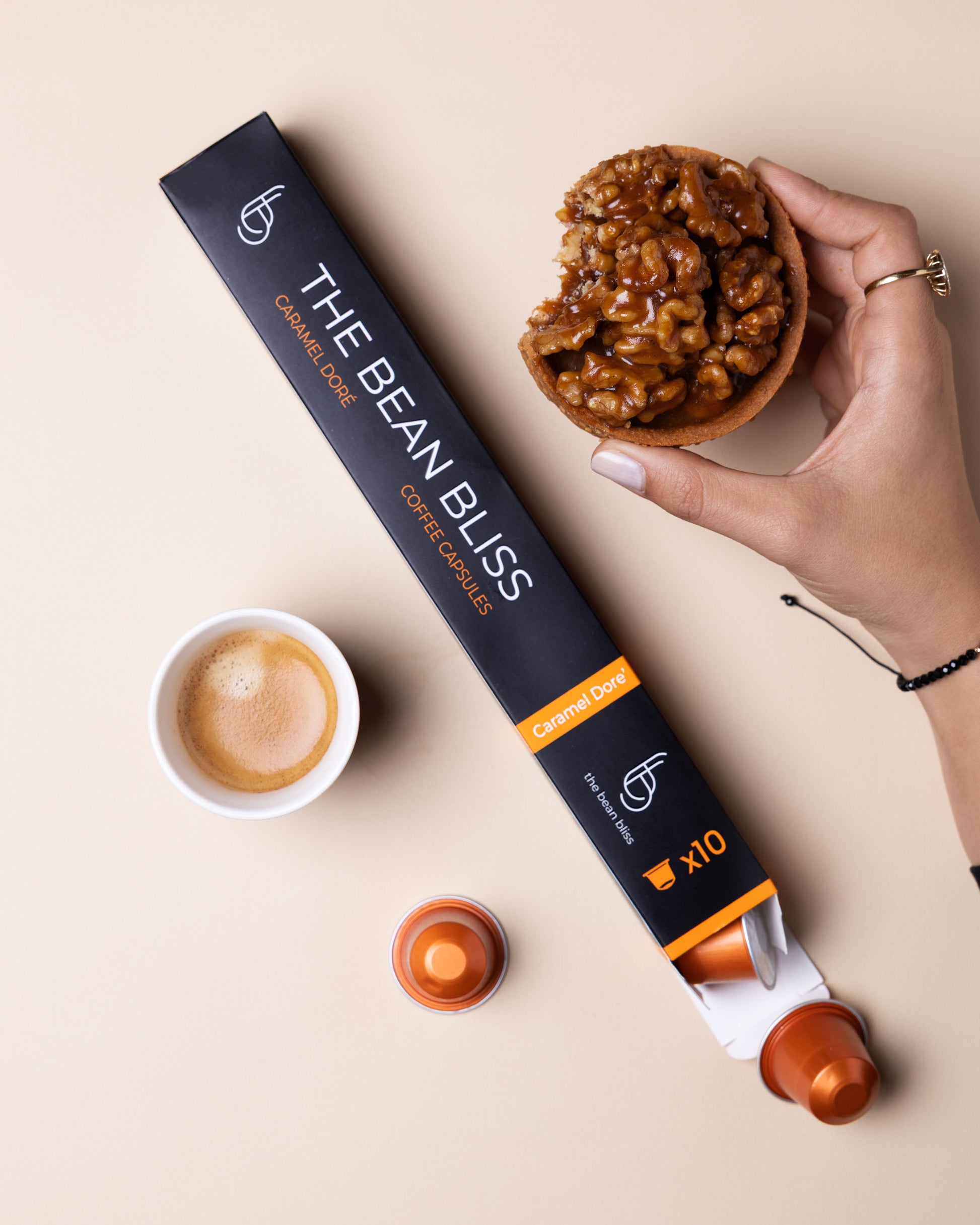 A silky-smooth coffee infused with golden caramel, offering a warm sweetness that softens and enhances every sip.